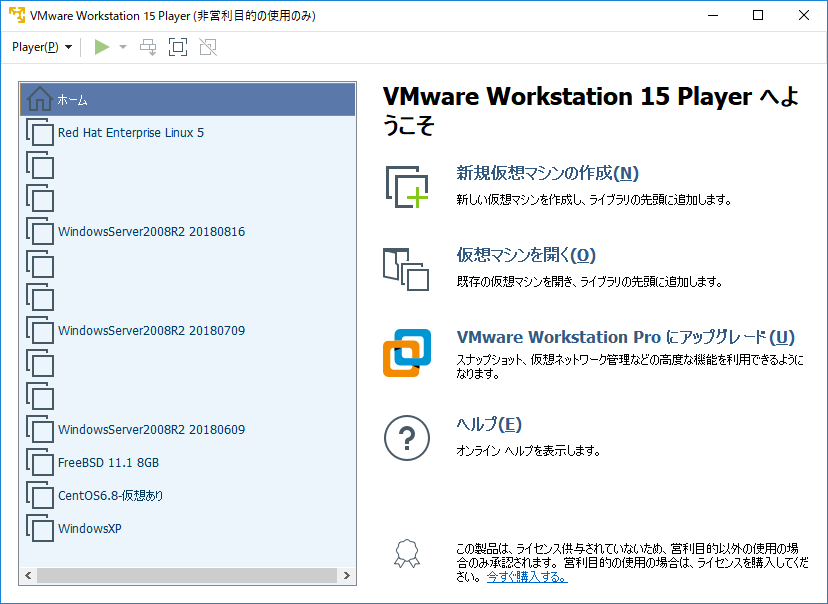 VMWare Player - 概要・ダウンロード・インストール - VMWare WorkStation Player バージョン 15
