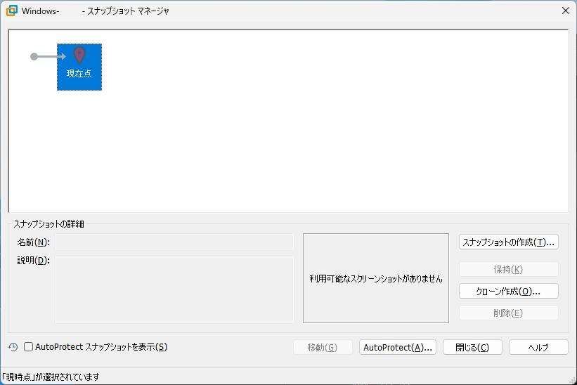 「スナップショットの作成」で、この時点のスナップショットを保存できるようです。