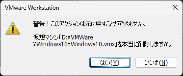 これで、仮想マシンは、ディレクトリごと削除されます。 3. 参考サイト 本ページは、下記のサイトを参考にさせていただきました。 「仮想マシンの削除」