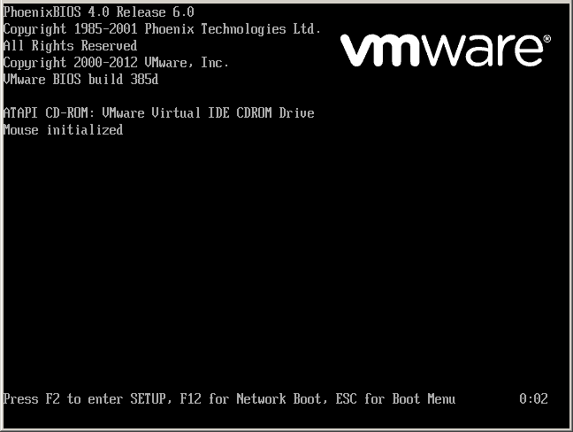 VMWare では BIOS メニューを持っており、仮想の BIOS を設定したり、boot の起動順序を変更することができます。