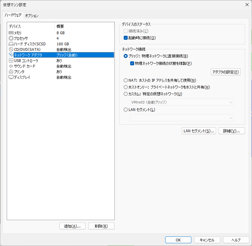 以下、ホストが「Windows11 23H2 Home, 64-bit (Build 22631.4112) 10.0.22631」、「VMWare」が「VMware(R) Workstation 17 Player 17.5.0 build-22583795」での操作です。