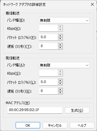 「MAC アドレス」横の「生成」を押せば、「MAC」アドレスが変更されます。