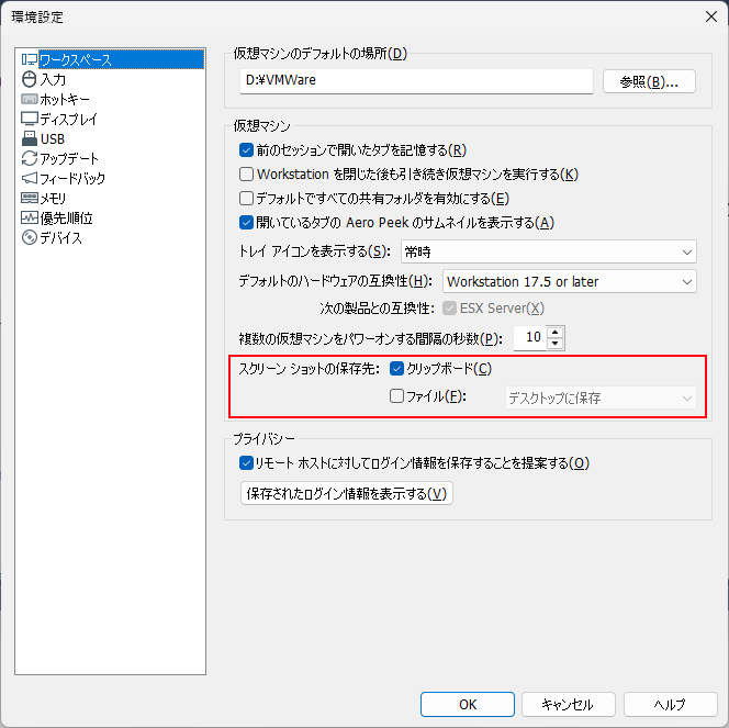 ゲストのオペレーティングシステムをインストール後、「VMWare Tools」をインストールすれば、クリップボード共有が可能になるので、ゲスト側に画面をキャプチャしてクリップボードに保存するプログラムをインストールして有効化すれば、スクリーンショットをホスト側にコピーすることはできるのですが。