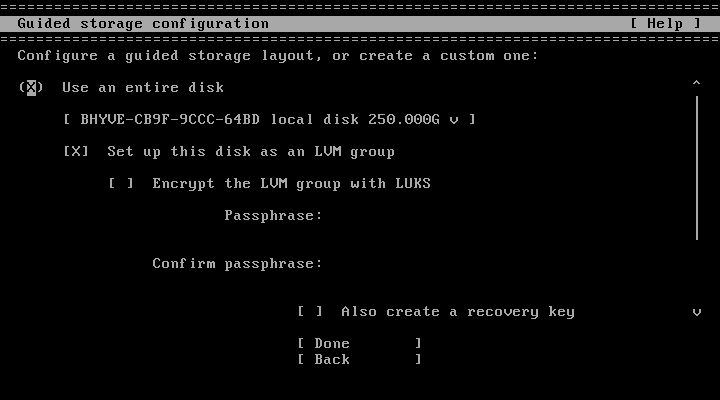 大事なのが「Set up this disk as an KVM group」のチェックを外しては、いけない。