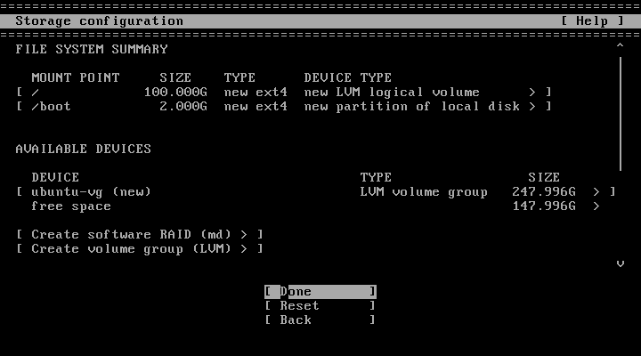 ストレージの構成を設定して Enter