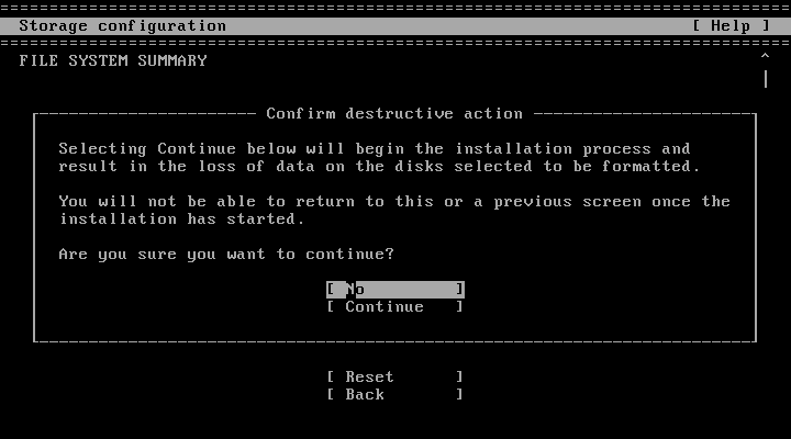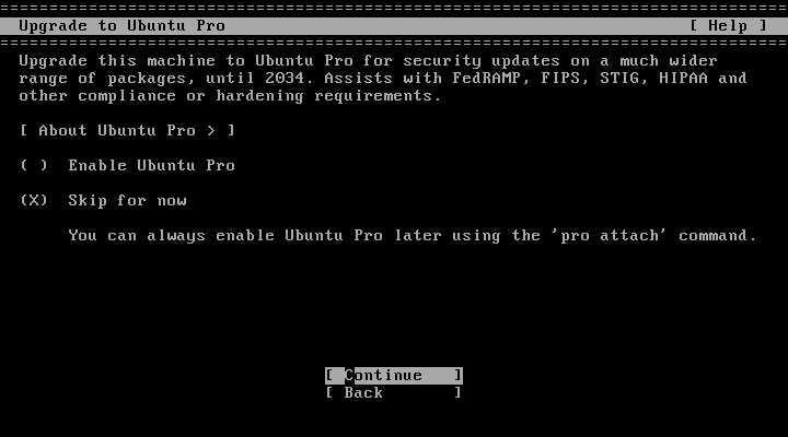 「Continue」を選択して、Enter