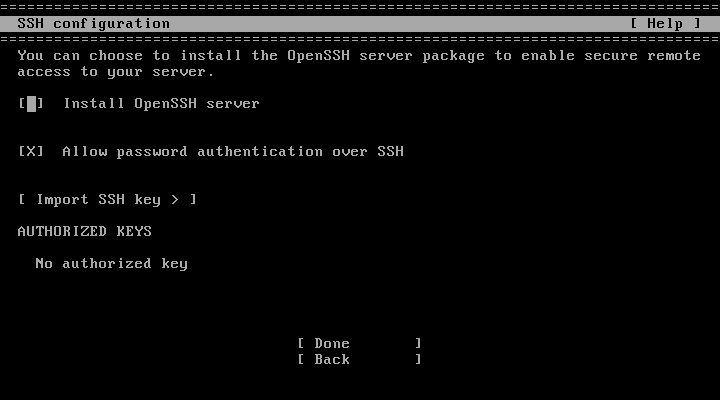 ここは、必須で「Install OpenSSH Server」にチェックをいれて。