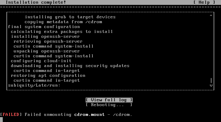 「unmount」で「FAILED」になりますが、このまま Enter