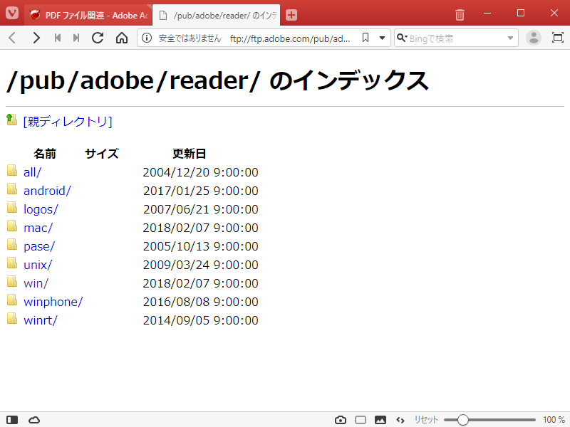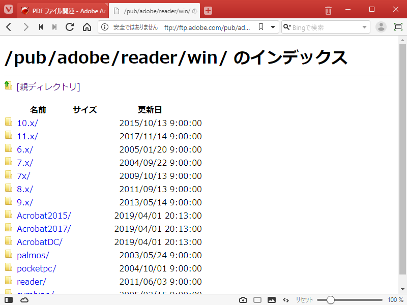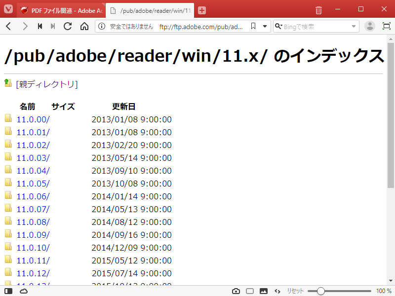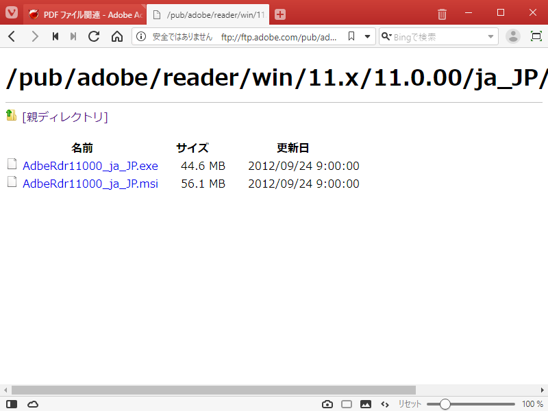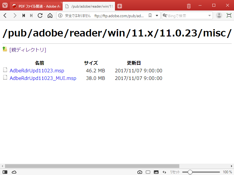 「11.0.23」(この時点の最新リビジョン)→「misc」とたどって、「.msp」(アップデータ)をダウンロードします。