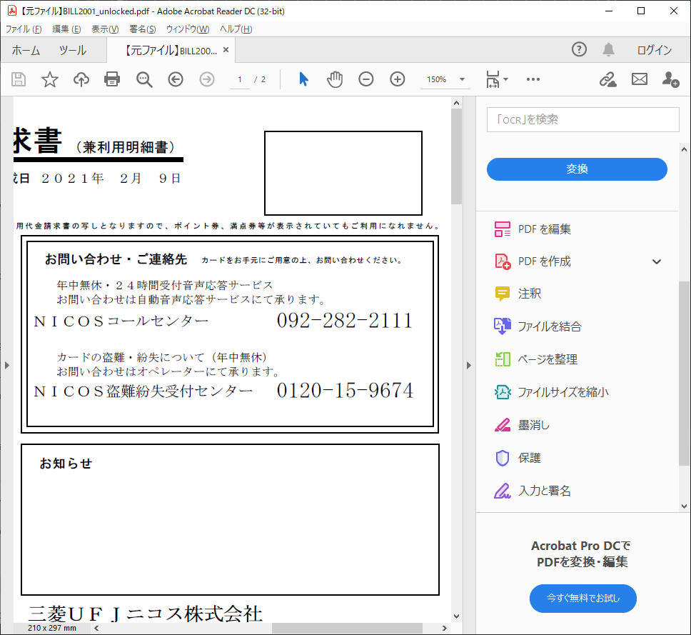 間違って「PDF を編集」を押しちゃうと、「7日間の無料体験版をお試し」か有料版を購入することになります。