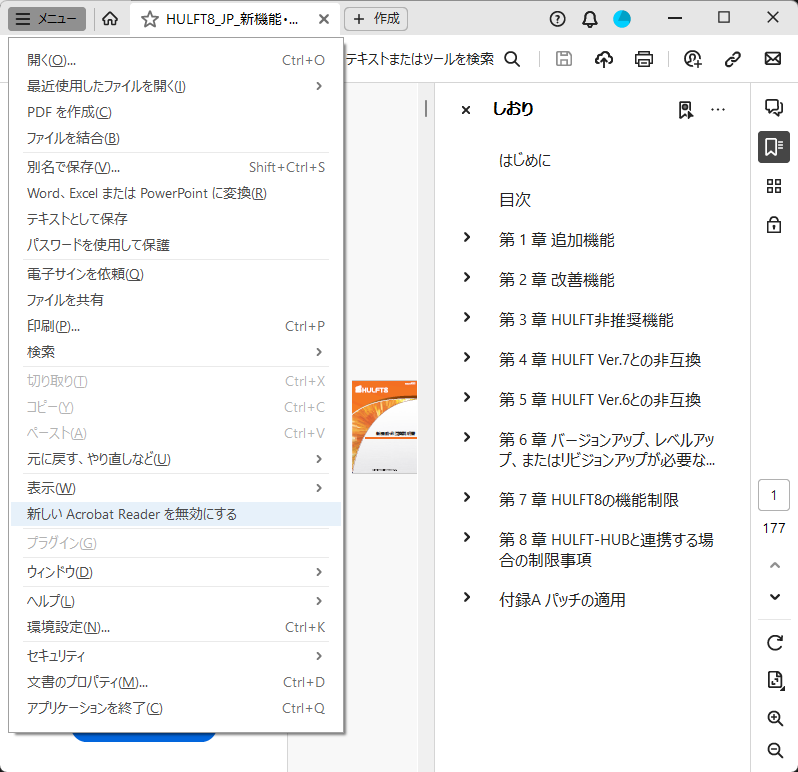ハンバーガーメニュー「」から、「新しい Acrobat Reader を無効にする」で、以前の表示に戻ります。