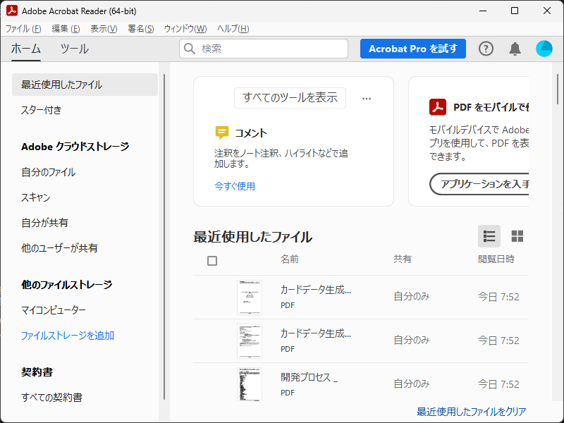以下、「Adobe Acrobat Reader バージョン 2024.003.20112」での話です。
