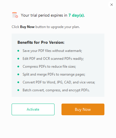 どうも最初に表示される、このダイアログを読むと、試用期間は、7日間のようです。