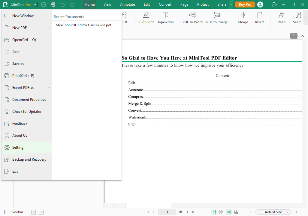 「MiniTool」→「Setting」