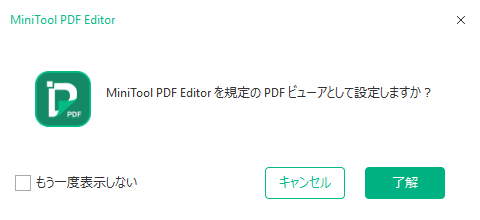 デフォルトの「PDF」プログラムを「MiniTool PDF Editor」にするか求められます。