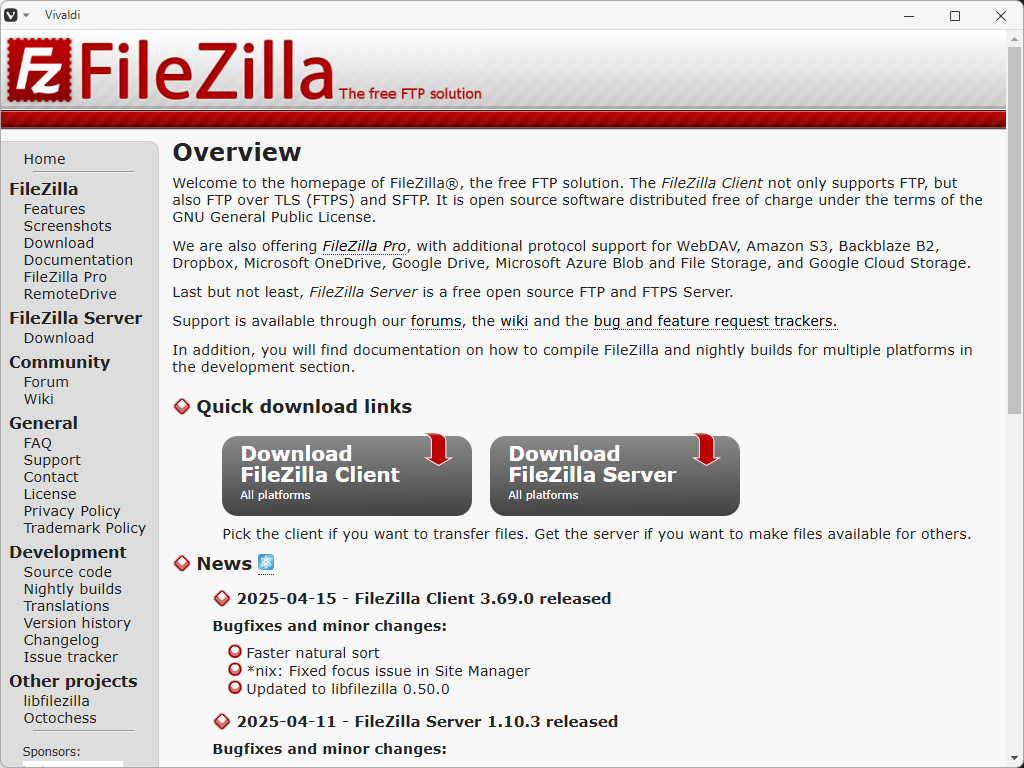 「FileZilla - The free FTP solution」