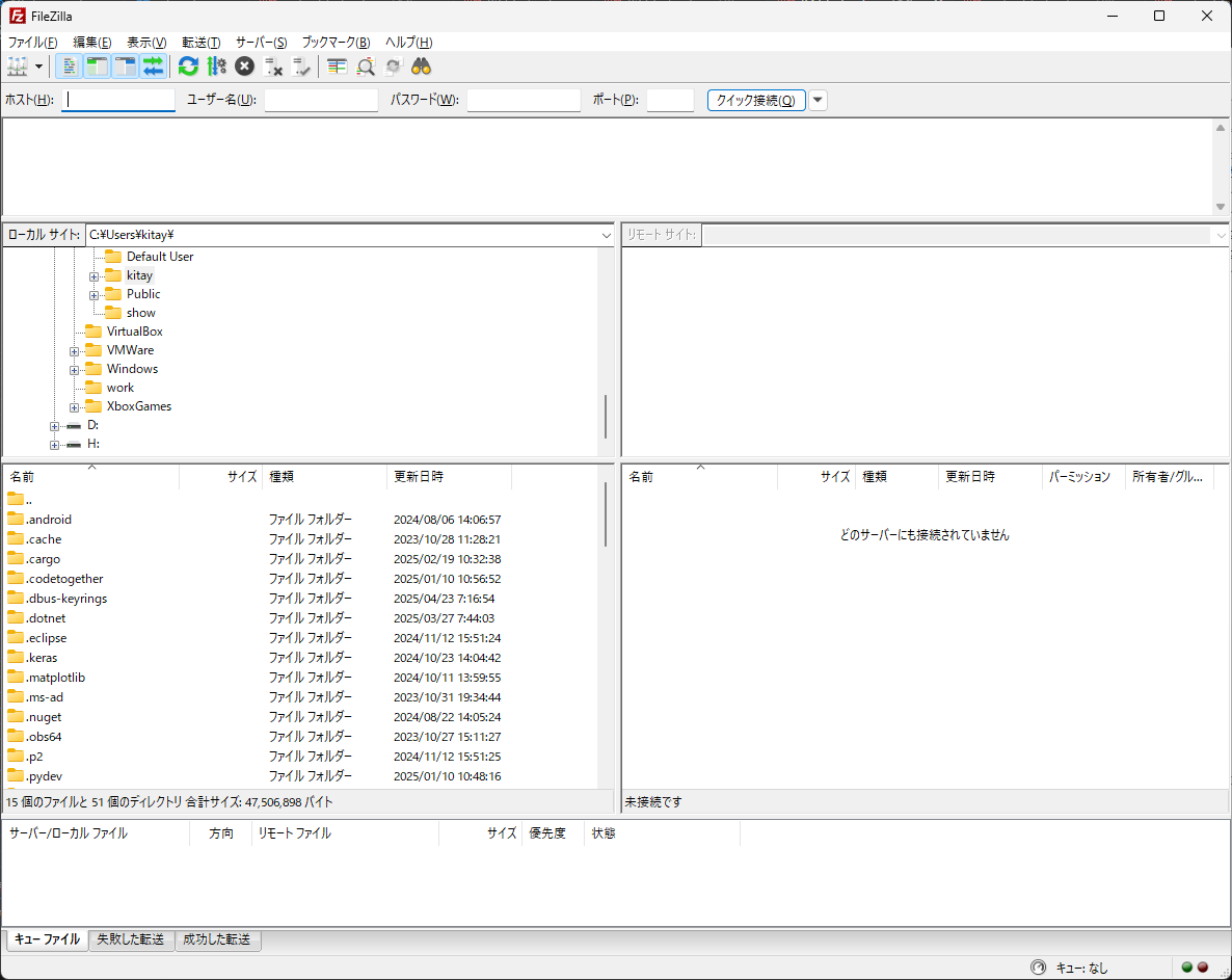 1. 概要 日本語化について、書かねばならないかと思っていたら、インストール時は、英語表記されていましたが、起動したら日本語化されていました。 「FTP」を使用することは、ほとんどなくなったので、「SFTP」で接続します。 本ページは、下記のサイトを参考にさせていただきました。 「FileZilla の設定方法」 2. 設定 前ページのインストール直後に起動した状態です。