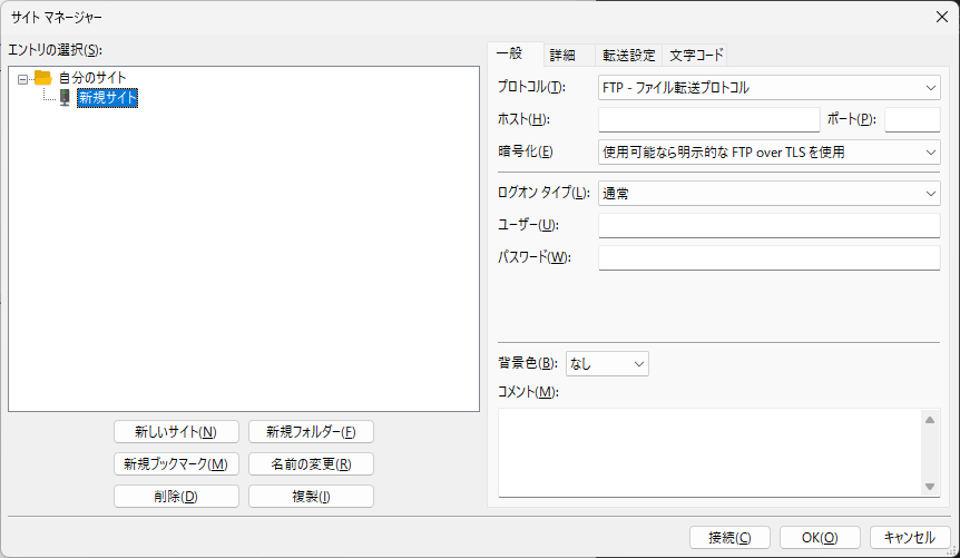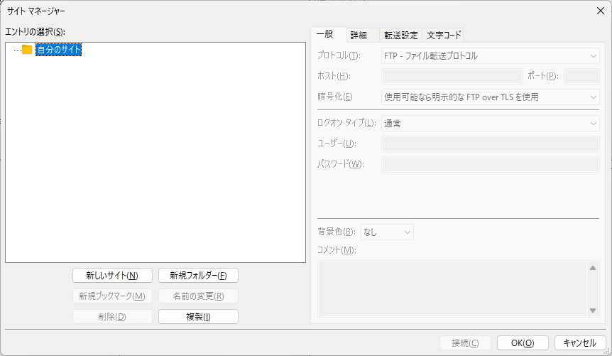 左上のアイコンを「サイトマネージャ」というそうで。 クリック。