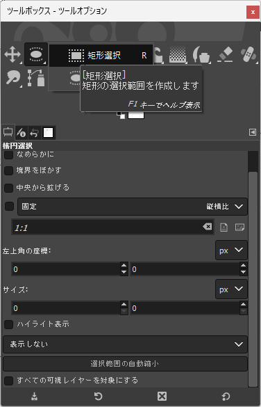 で、矩形選択へ戻そうとするのですが、戻し方をよく忘れるので、メモしておくのです。
