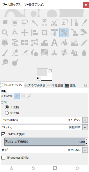 「回転」を選択しておきます(アイコンがわかりにくい)