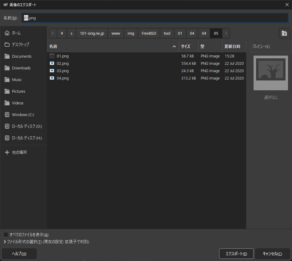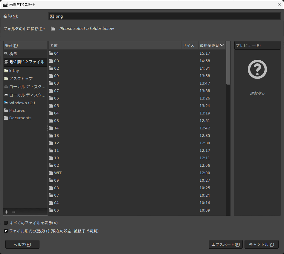 ところが、「GIMP 3.0」では、直前の 1フォルダしか選択肢がないので、複数のフォルダを切り替えるのは難しい・・・。