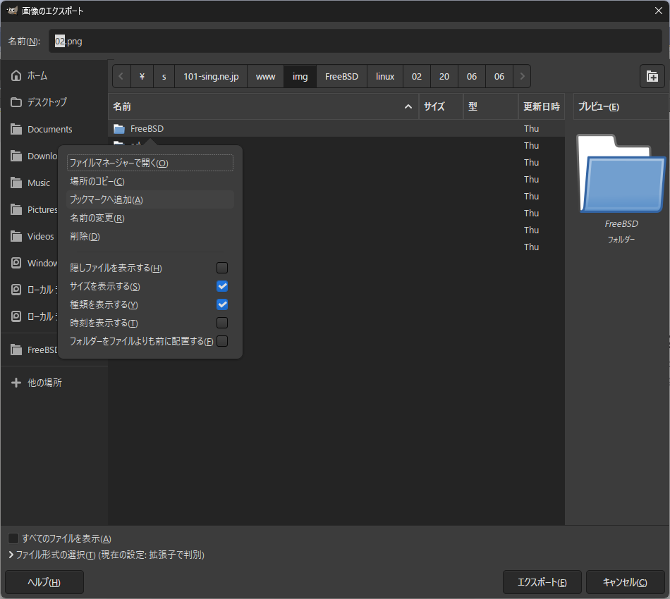 保存時に、頻繁にアクセスしそうなフォルダを右クリックして「ブックマークへ追加」