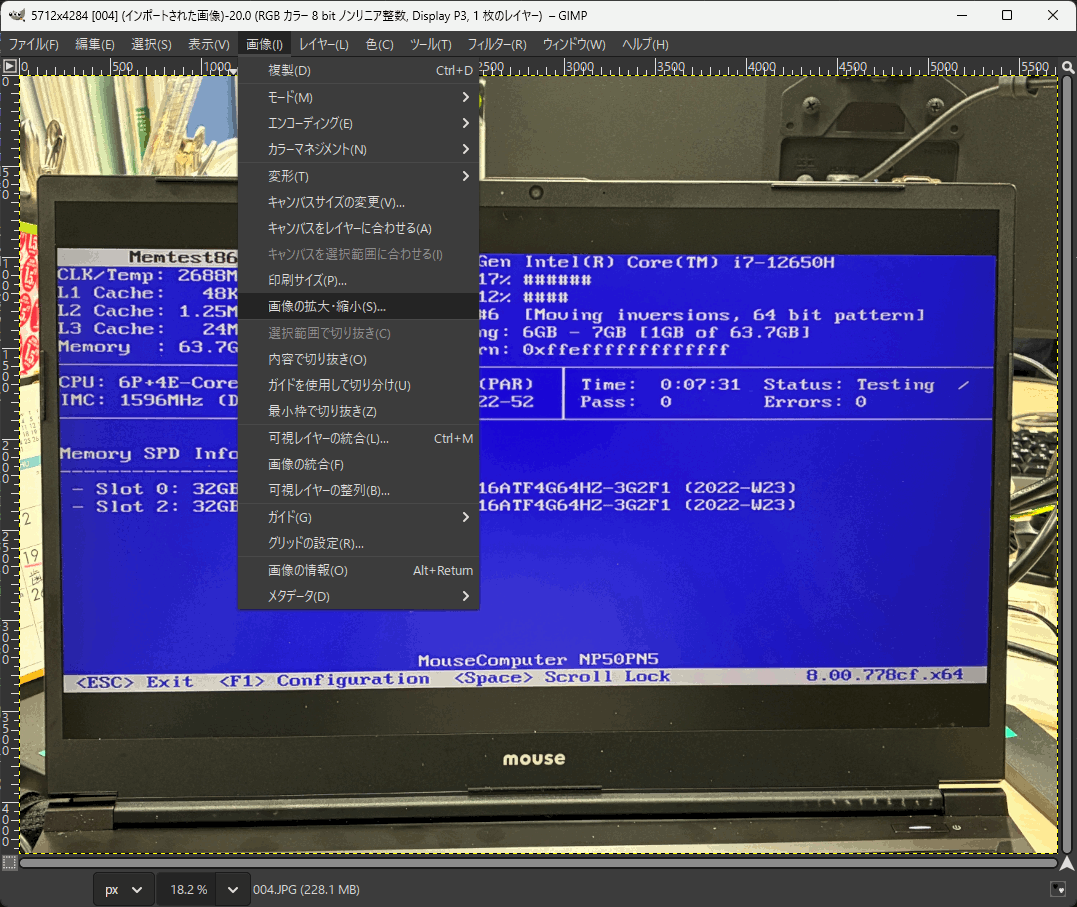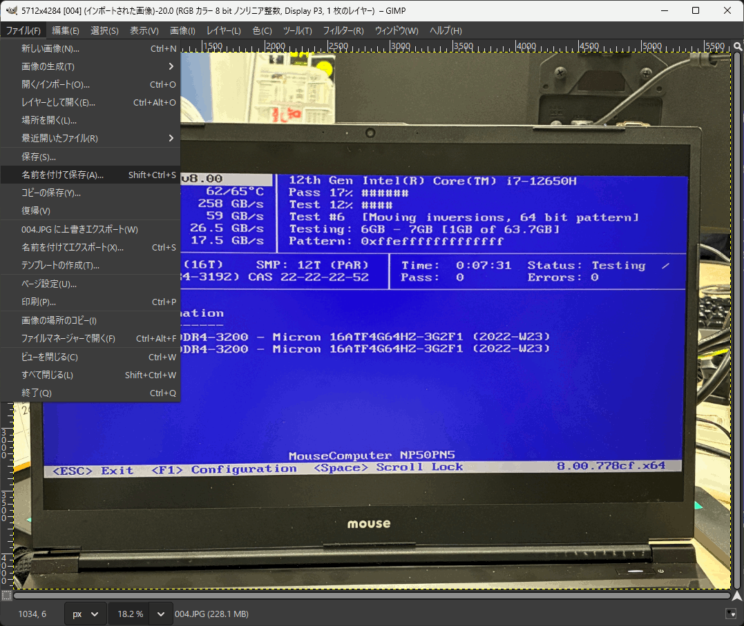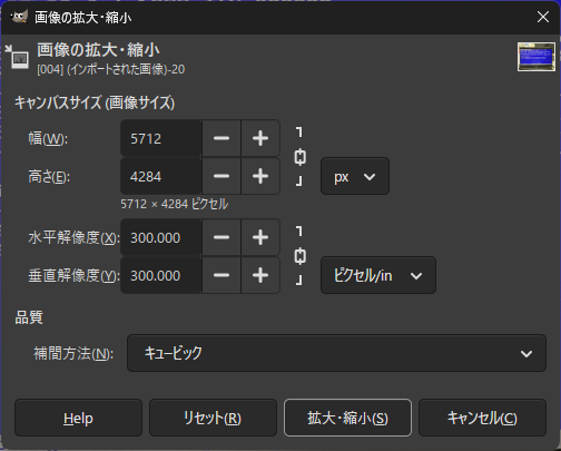 でまぁ、「.jpeg」で保存するにしても縦横が「5712x4284」だったりします(対象によって異なる)。