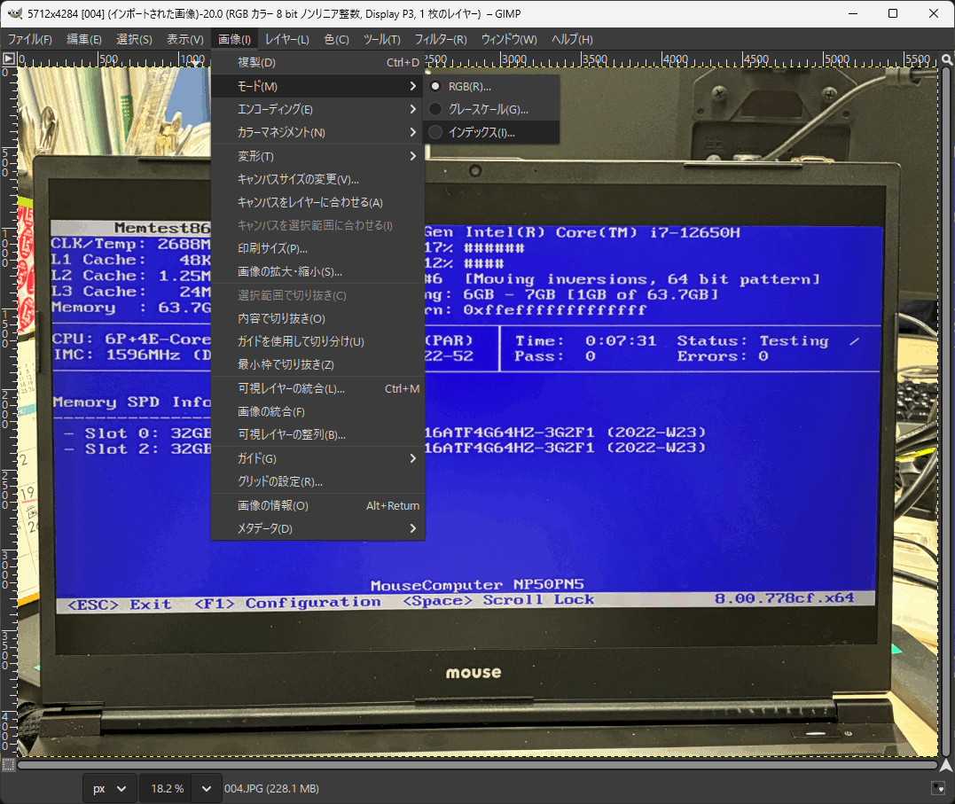 「画像」→「モード」