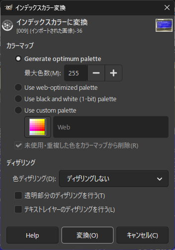 画像の形式を変更します。
