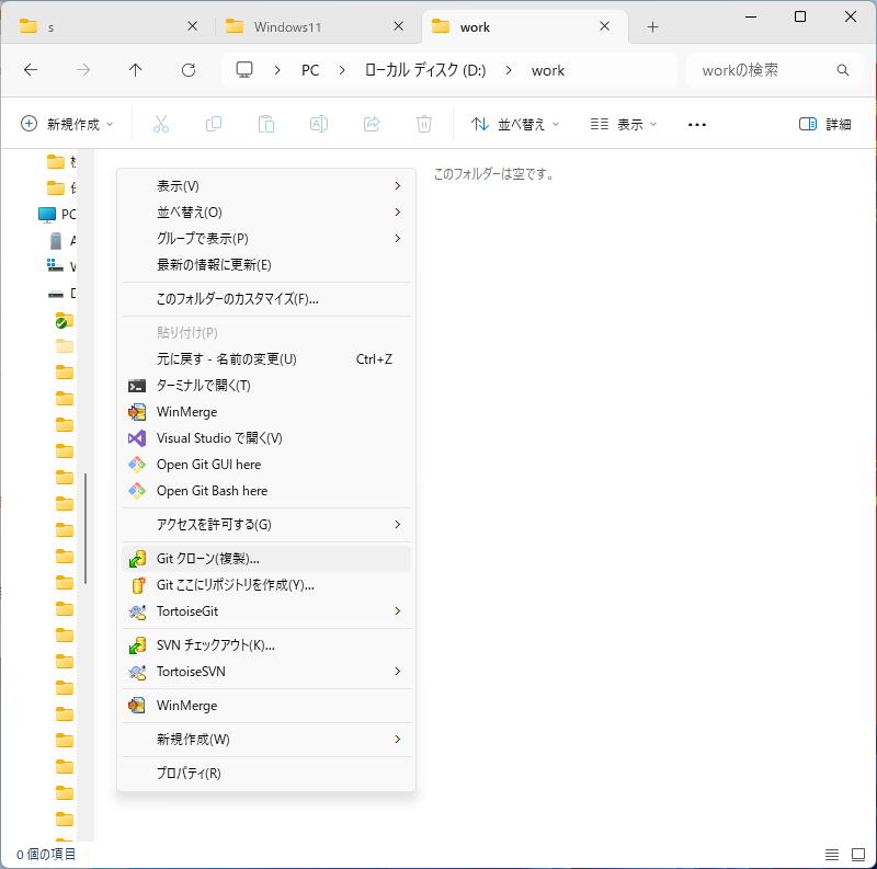 「TortoiseGit」を使って、「Git」のリポジトリのクローンを作成します。