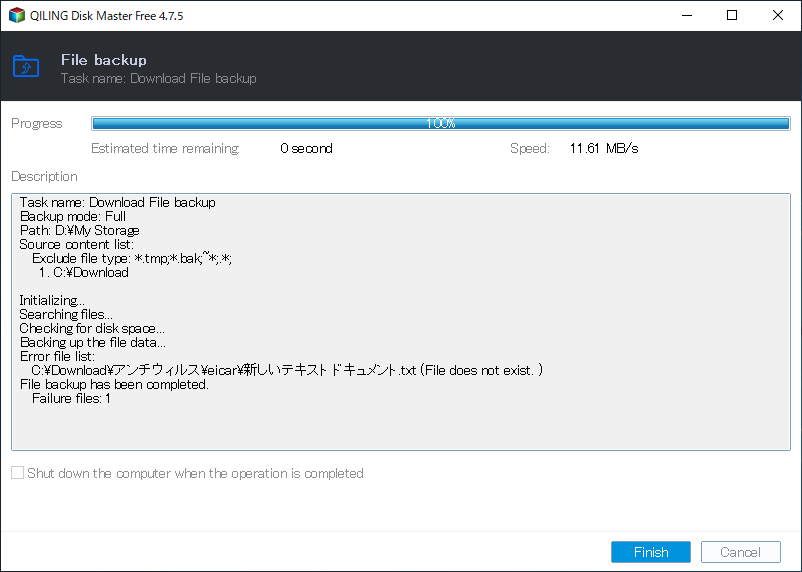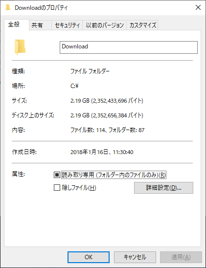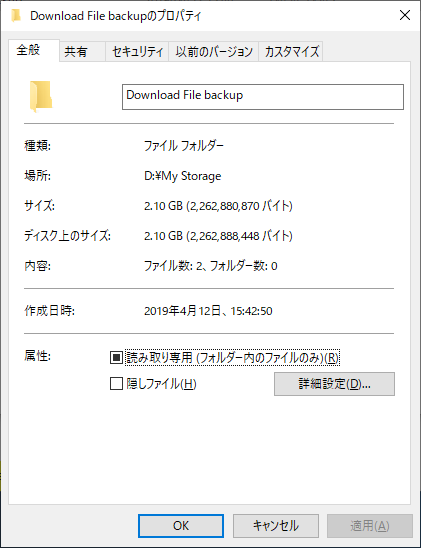 バックアップ対象のフォルダのサイズ・ファイル数は下記の通りです。