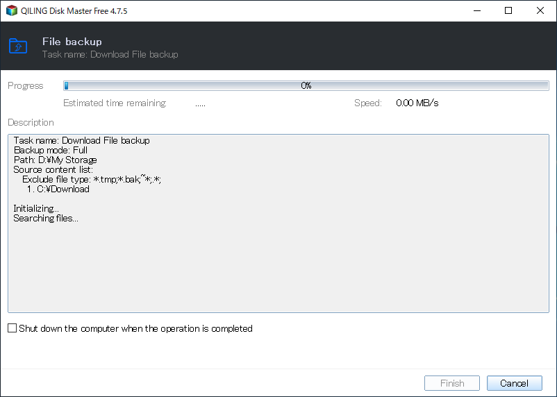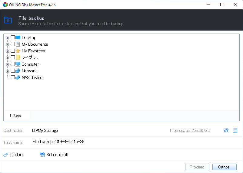 「バックアップ対象」「出力先」「タスク名」を設定して