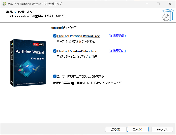 一緒に「MiniTool Shadow Maker Free」をインストールする場合は、そのままで。