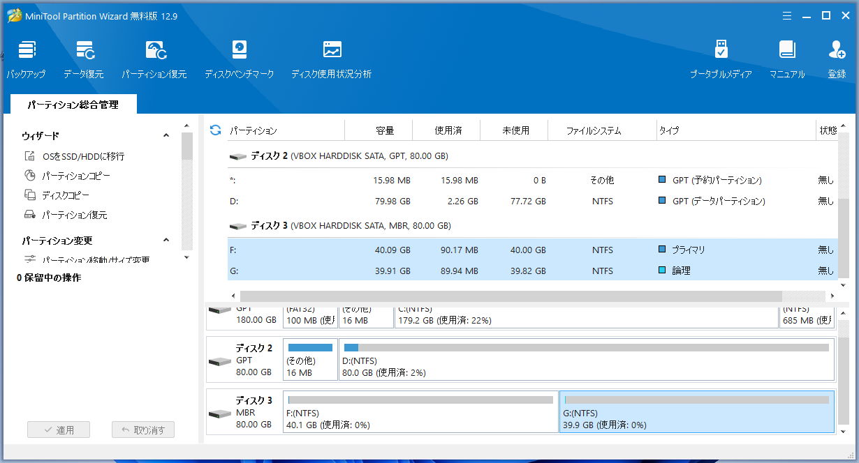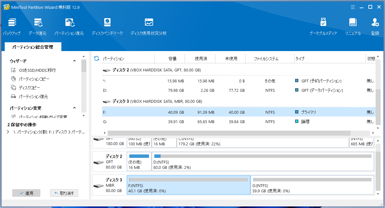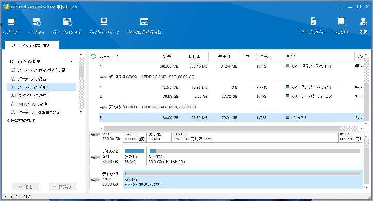 MiniTool Partition Wizard - 12.9 - パーティション分割