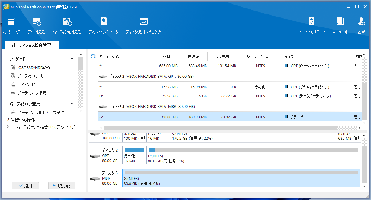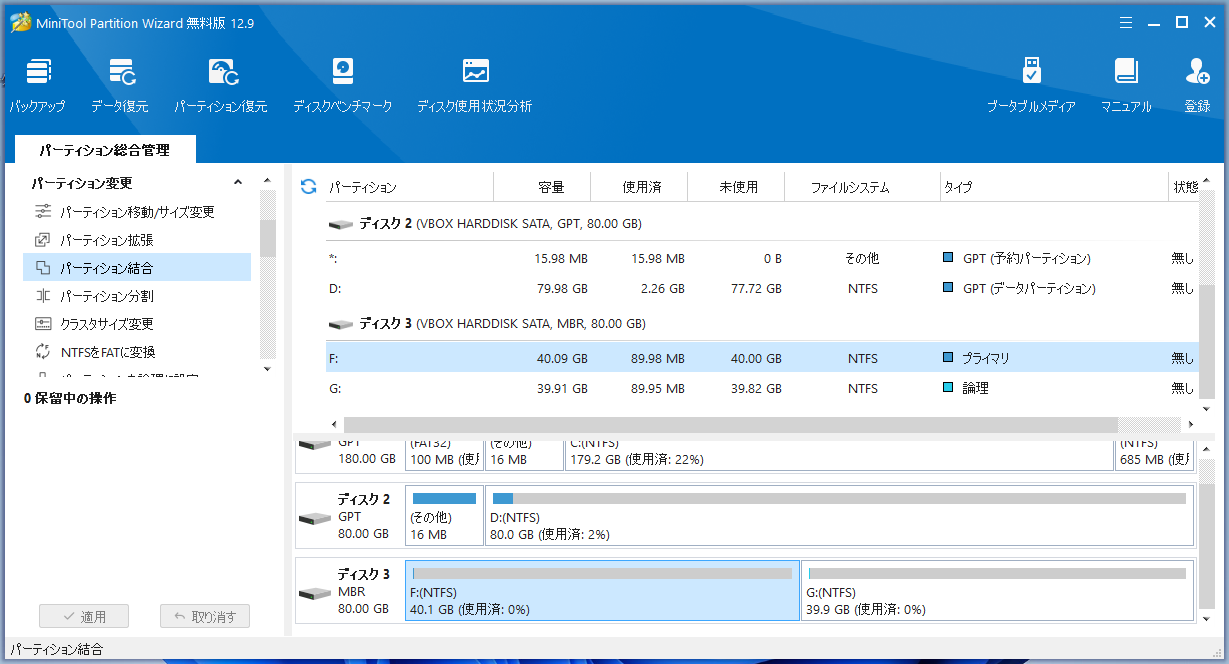 MiniTool Partition Wizard - 12.9 - パーティション統合