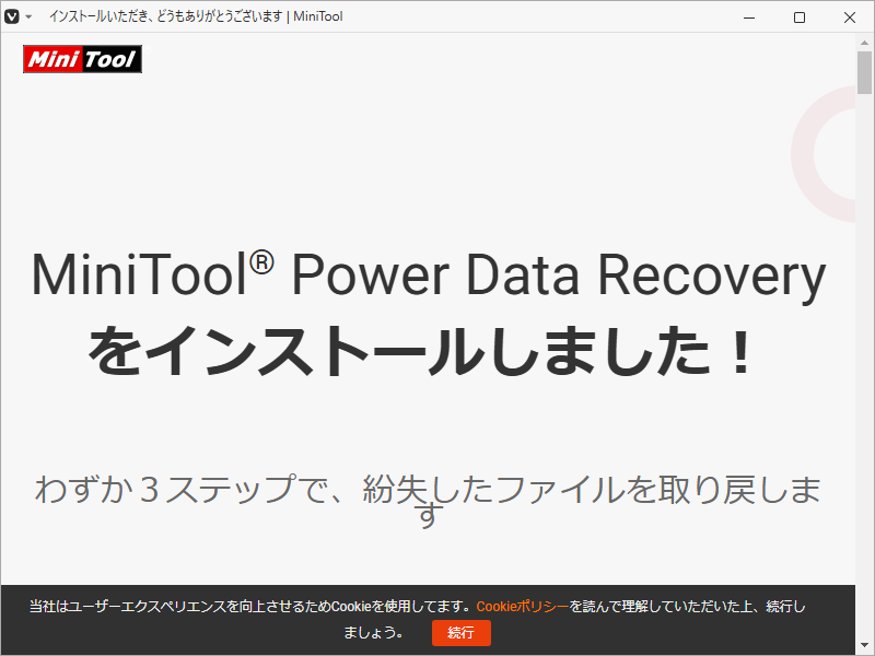 インストール完了と同時に、ブラウザが開いて、下記のページが表示されます。