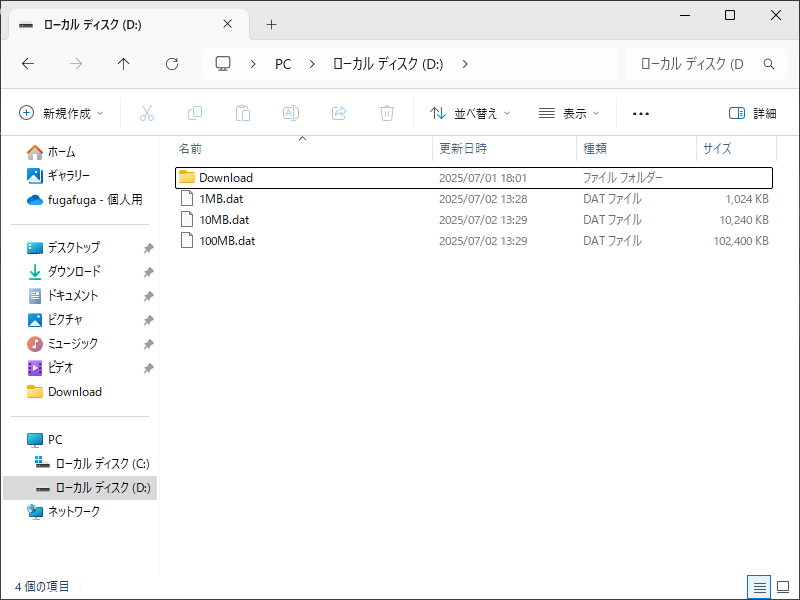 あらかじめ、1ディレクトリ内にファイルを作成した状態で、ファイルを削除して、ゴミ箱からも削除しています。