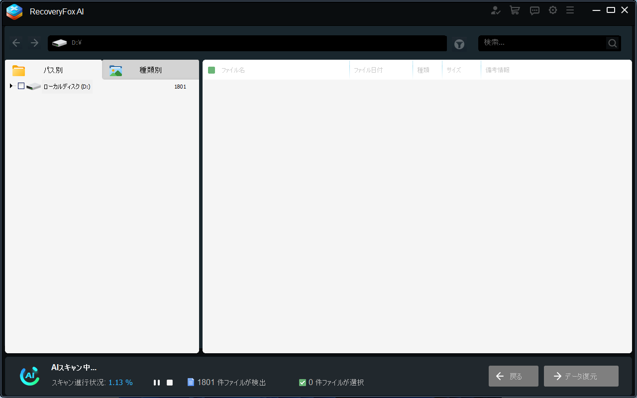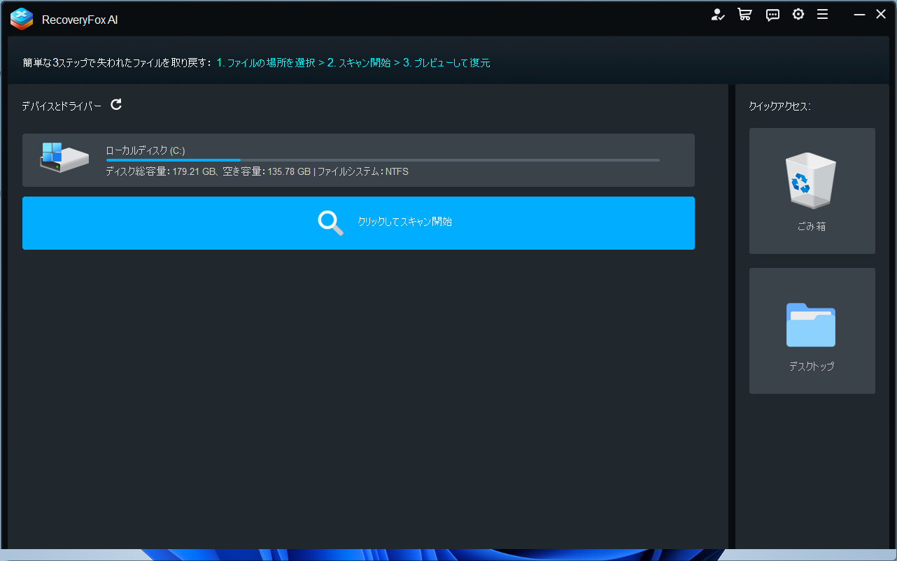 復旧するデータを持つメディアをクリックして、スキャンを開始します。