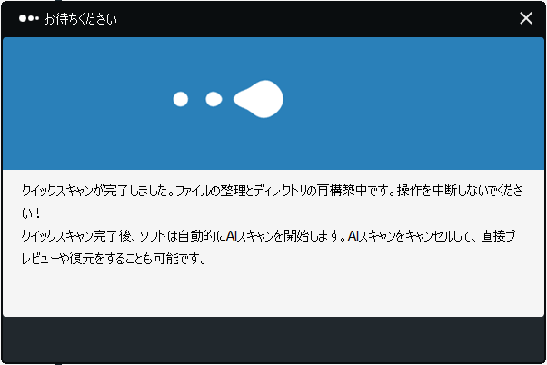 一瞬、下記のダイアログが表示され、すぐに次の画面へ移行します。