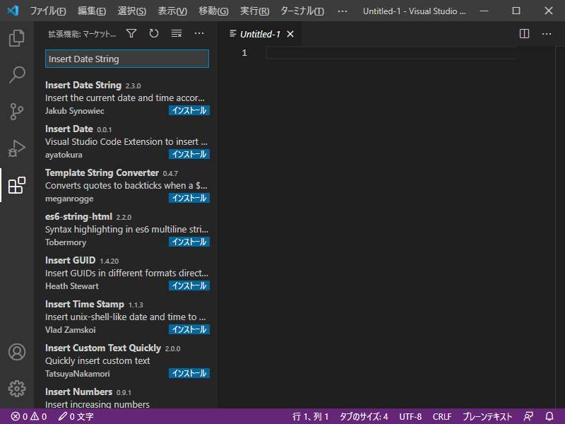 「Visual Studio Code」では、まず拡張機能をインストールするところからのようです。