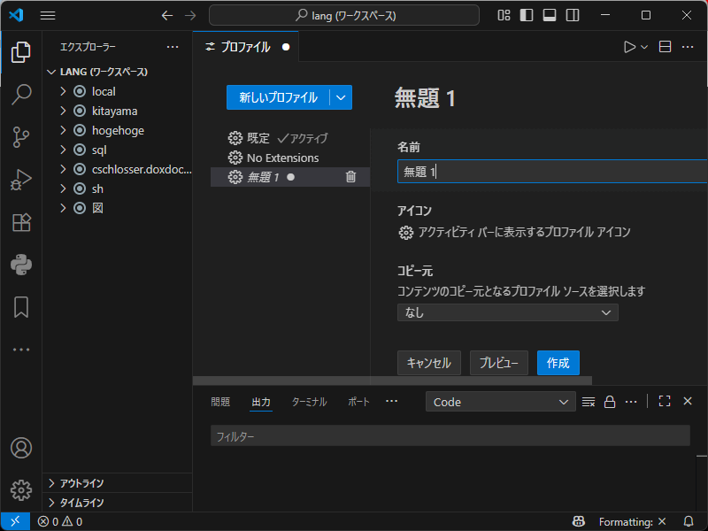 拡張機能は、拡張機能同士で競合して、他の拡張機能に悪さをすることがあるので、言語ごとに使う拡張機能を使い分けるために、それ専用のプロファイルを作ることにしました。