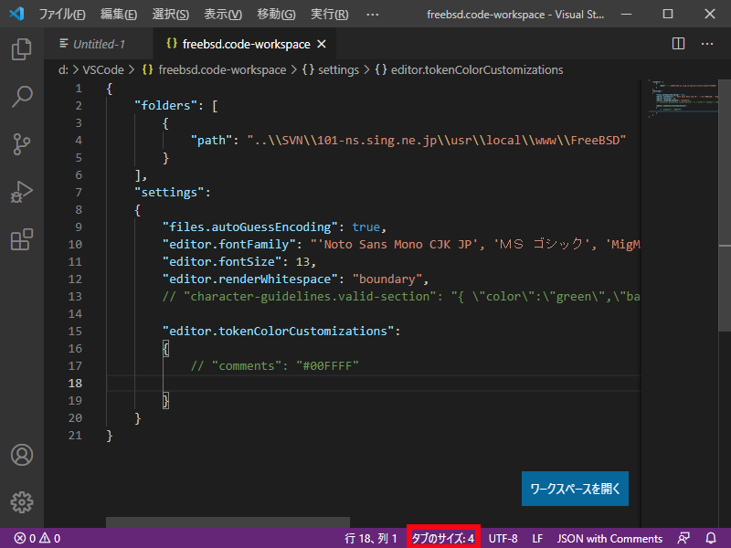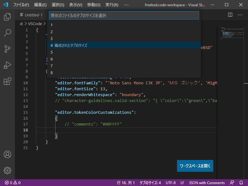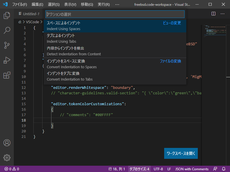 Visual Studio Code - エディタ - タブ幅・インデント