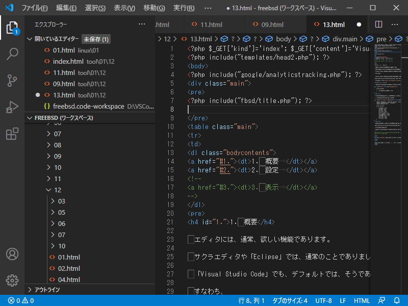 サクラエディタや「Eclipse」では、通常のことでありまして。
