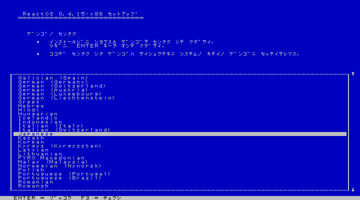 「Japanese」を選択して Enter