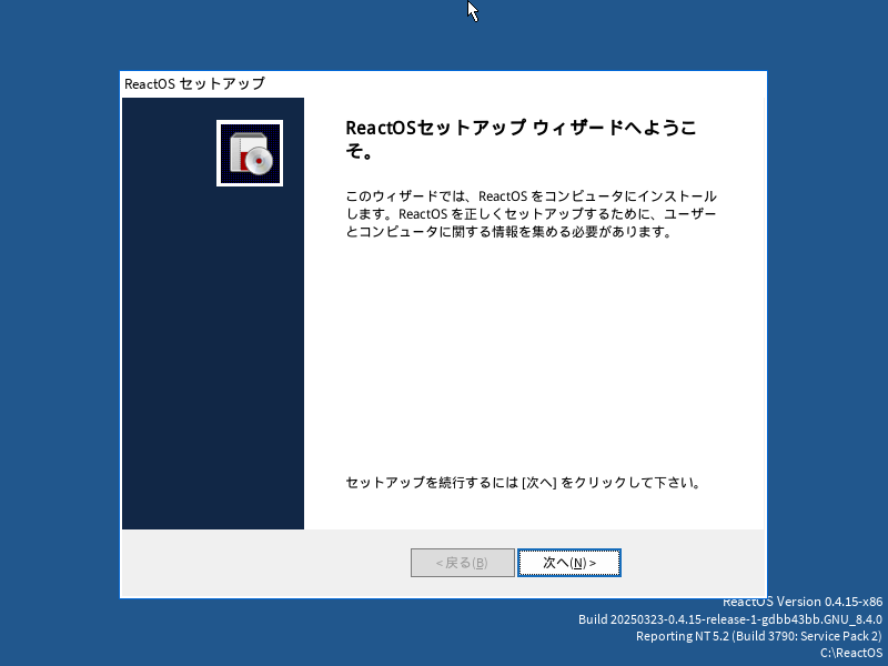 インストーラをマウントして、起動します。