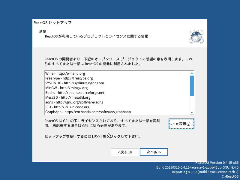 前の画面で、「受諾」を選択して Enter