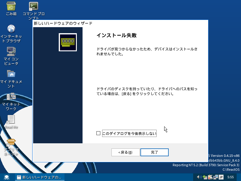 なんか、インストール失敗になってますけど。