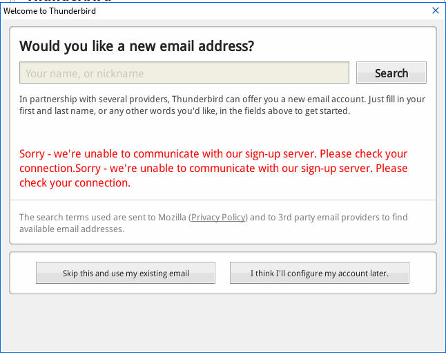 初回起動時は、メールアドレス設定が開きますが、ここでは設定できませんでした。