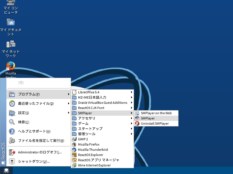 1. 概要 画像編集ソフトとして、「SMPlayer」を使用します。 2. インストール 「ReactOS アプリマネージャ」で、「ビデオ」「SMPlayer」を選択して、インストールします。 3. 起動 「スタート」→「プログラム」→「SMPlayer」→「SMPlayer」