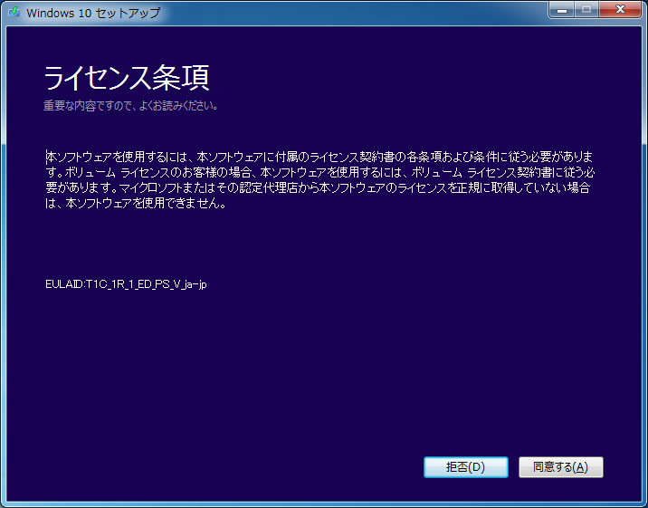 Windows7 - Windows10 へのアップグレード - アップグレードインストール